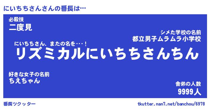 | 2回繰り返すあだ名 | 『にいにい』『ににいい』『ねちねち』 |