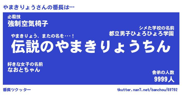 | 伝説のあだ名 | 『伝説のスナイパーやまきりょう』 |
