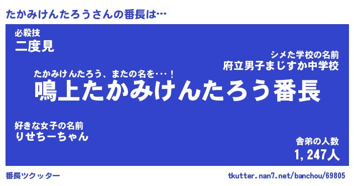| 伝説のあだ名 | 『封印されしスナイパーたかみけんたろう』 |