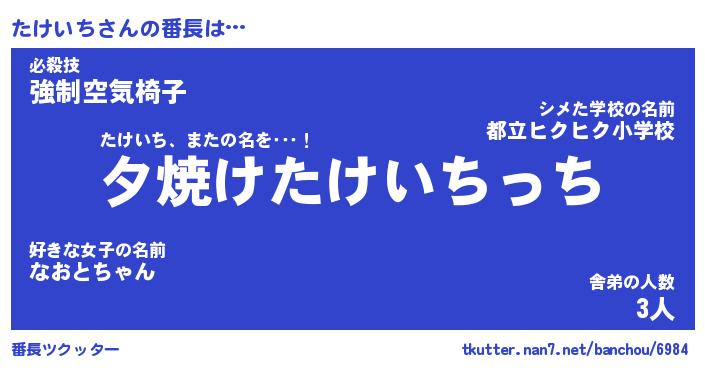 | 肩書あだ名 | 『たけいち御曹司』『たけいち総理大臣』 |