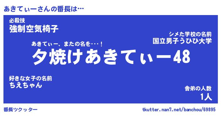 | 伝説のあだ名 | 『封印されしスナイパーあきてぃー』 |