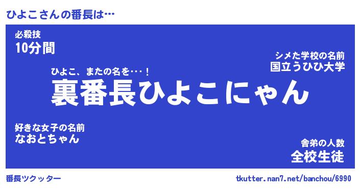 | ファンタジー風あだ名 | 『ヒヨフェル』『エターナルヒヨコー』 |