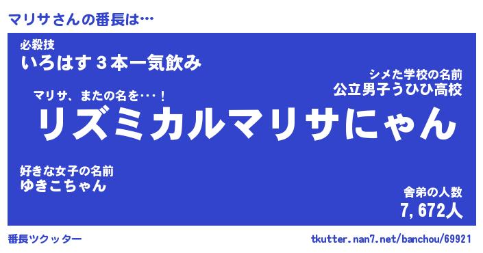 | 意味不明あだ名 | 『ペロリンマリサ』『マリサフォーエバー』 |