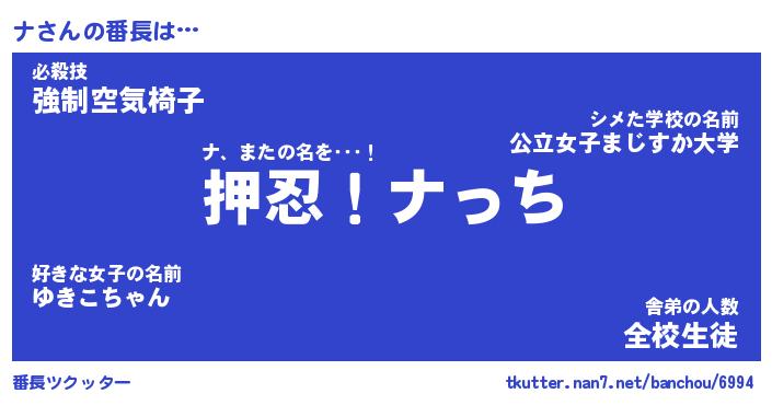 | 肩書あだ名 | 『ナ店長』『ナ国家主席』『ナ班長』 |