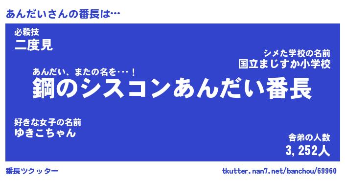| 意味不明あだ名 | 『ペロリンあんだい』『永久保存あんだい』 |