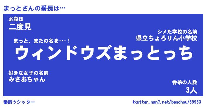 | 男性向けラノベタイトル風あだ名 | 『まっとの憂鬱』 |