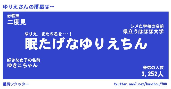 | 2回繰り返すあだ名 | 『ゆりゆり』『ゆゆりり』『ぬれぬれ』 |