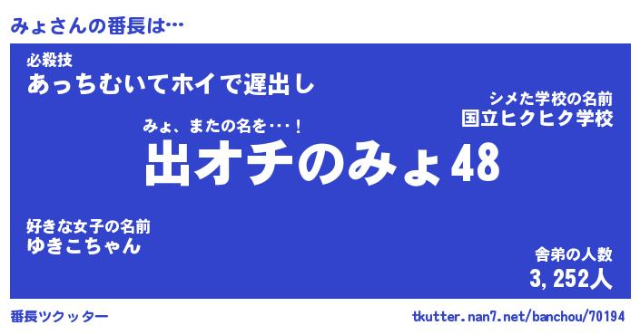 | ヒーロー風カッコイイあだ名 | 『スーパーミョ』『ウルトラみょマン』 |