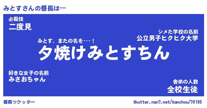 | ヘコむあだ名 | 『みとふぇ~』『酢こんぶ』『みとお』 |