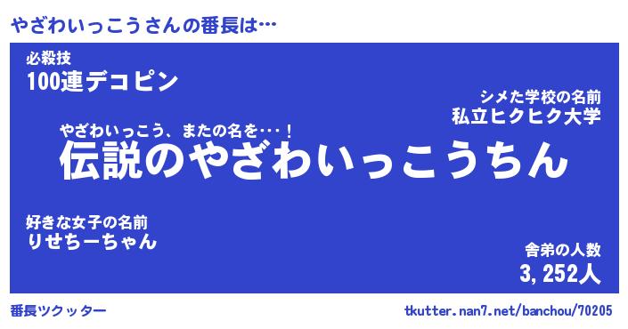| 伝説のあだ名 | 『伝説のスナイパーやざわいっこう』 |