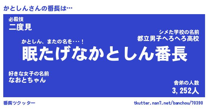 | 男性向けラノベタイトル風あだ名 | 『カトシンアートオンライン』 |
