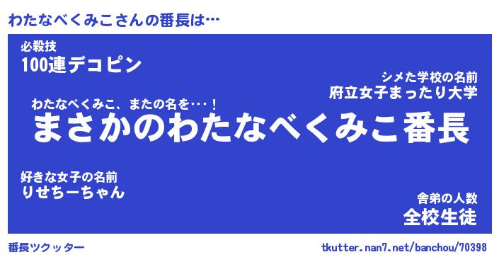 | ピコ太郎風あだ名 | 『ワコ五郎』『ピワ六郎』『ワタ二郎』 |