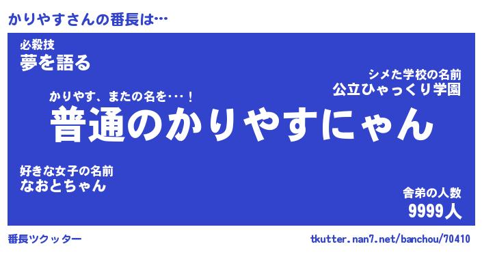 | 意味不明あだ名 | 『ペロリンかりやす』『永久保存かりやす』 |