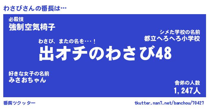 | ヒーロー風カッコイイあだ名 | 『スーパーワサビ』『ウルトラわさびマン』 |
