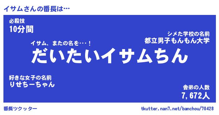 | ポケモン風あだ名 | 『イサチュウ』『イサムダネ』 |