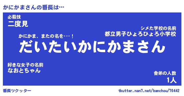 | 2回繰り返すあだ名 | 『かにかに』『かかにに』『いそいそ』 |