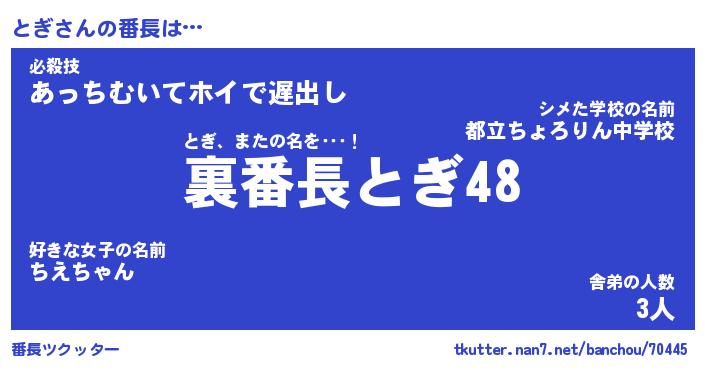 | ファンタジー風あだ名 | 『トギフェル』『エターナルトギー』 |