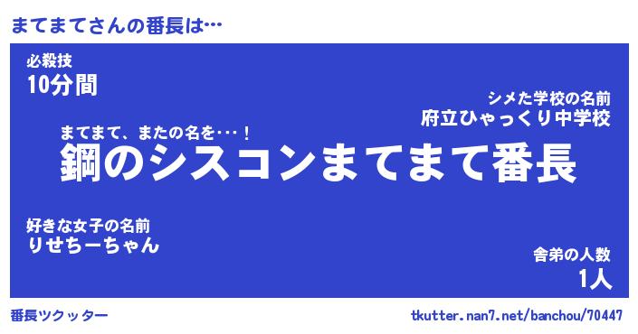 | ヘコむあだ名 | 『まてにゅー』『つくし』『まて太郎』 |