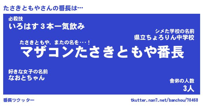 | 肩書あだ名 | 『たさきともや社長』『たさきともや班長』 |