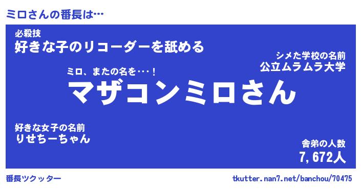 | 意味不明あだ名 | 『ペロリンミロ』『ミロフォーエバー』 |