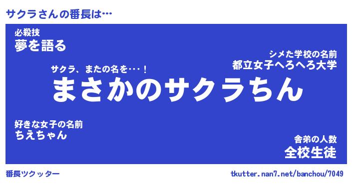 | ヒーロー風カッコイイあだ名 | 『スーパーサクラ』『ウルトラサクラマン』 |