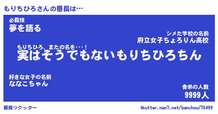 | ヒーロー風カッコイイあだ名 | 『スーパーモリチヒロ』『天弓騎士モリ』 |