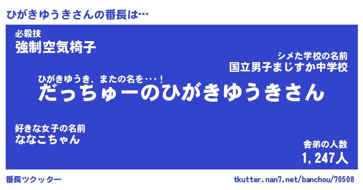 | ピコ太郎風あだ名 | 『ヒコ次郎』『ピヒ八郎』『ヒガ一郎』 |