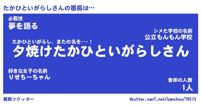 | 伝説のあだ名 | 『封印されしスナイパーたかひといがらし』 |