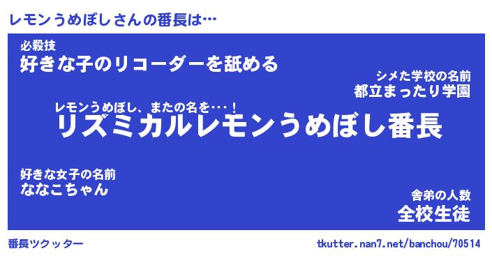 | 肩書あだ名 | 『レモンうめぼし店長』 |