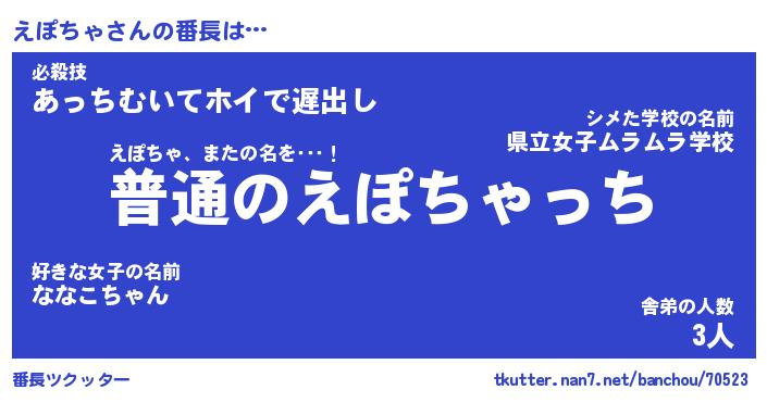 | 意味不明あだ名 | 『ペロリンえぽちゃ』『永久保存えぽちゃ』 |