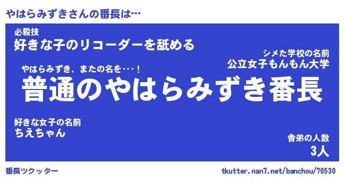 | ヒーロー風カッコイイあだ名 | 『スーパーヤハラミズキ』『魔戒騎士ヤハ』 |