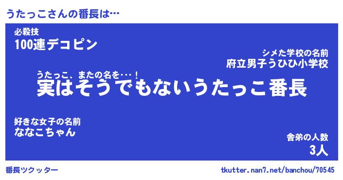 | 伝説のあだ名 | 『封印されしスナイパーうたっこ』 |