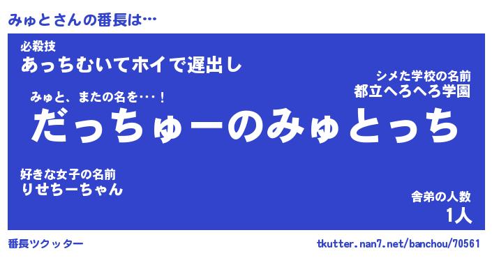 | 肩書あだ名 | 『みゅと店長』『みゅと国家主席』 |