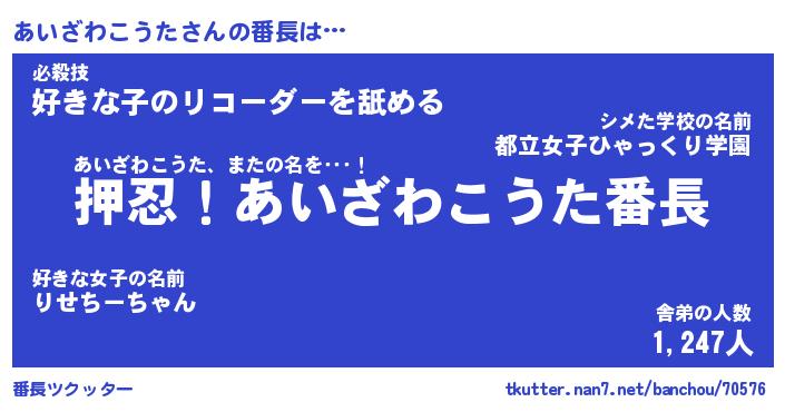 | 伝説のあだ名 | 『封印されしスナイパーあいざわこうた』 |