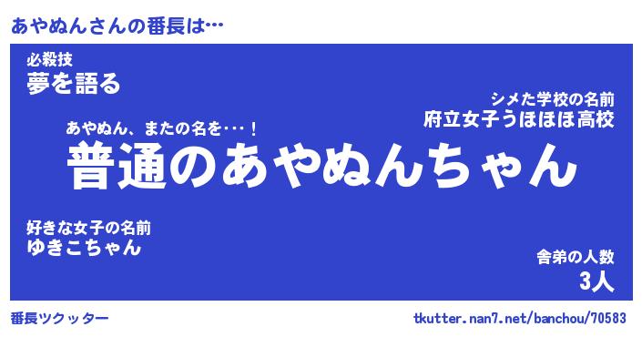 | 意味不明あだ名 | 『ペロリンあやぬん』『永久保存あやぬん』 |