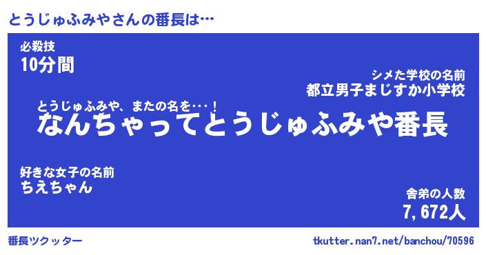 | 伝説のあだ名 | 『伝説のスナイパーとうじゅふみや』 |