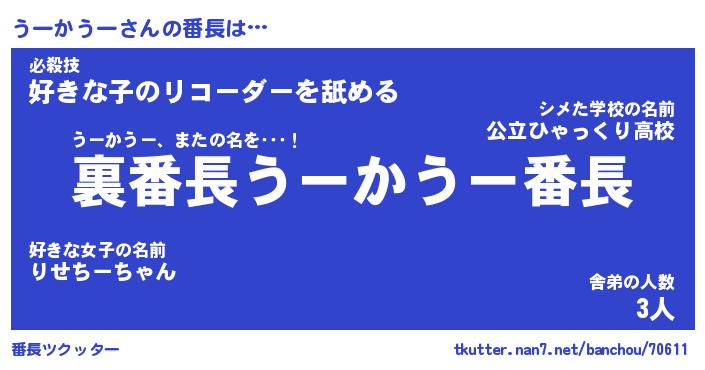 | ピコ太郎風あだ名 | 『ウコ次郎』『ピウ四郎』『ウー六郎』 |