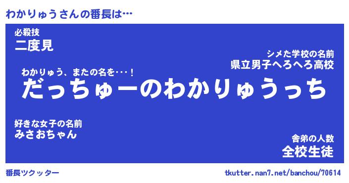 | 伝説のあだ名 | 『伝説のスナイパーわかりゅう』 |