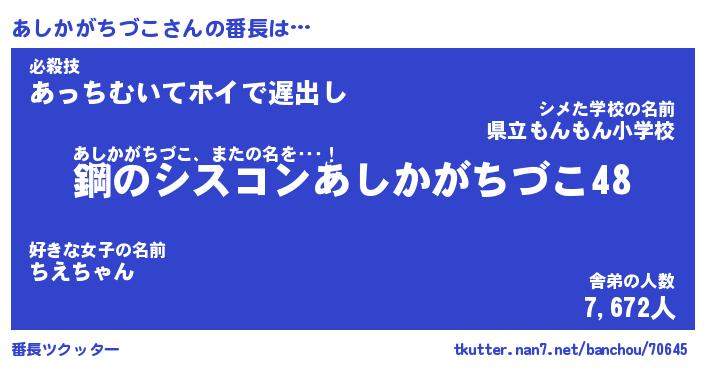 | ヘコむあだ名 | 『あしもー』『つくし』『あしっ子』 |