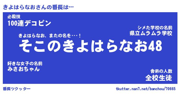 | ピコ太郎風あだ名 | 『キコ史郎』『ピキ四郎』『キヨ八郎』 |