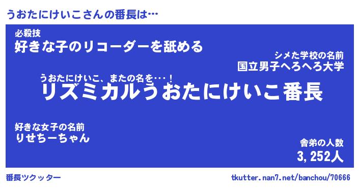 | 肩書あだ名 | 『うおたにけいこ御曹司』 |