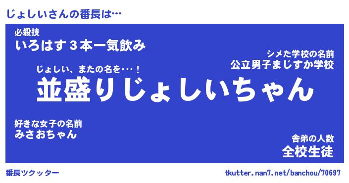 | ヘコむあだ名 | 『じょもー』『つくし』『じょぷりん』 |