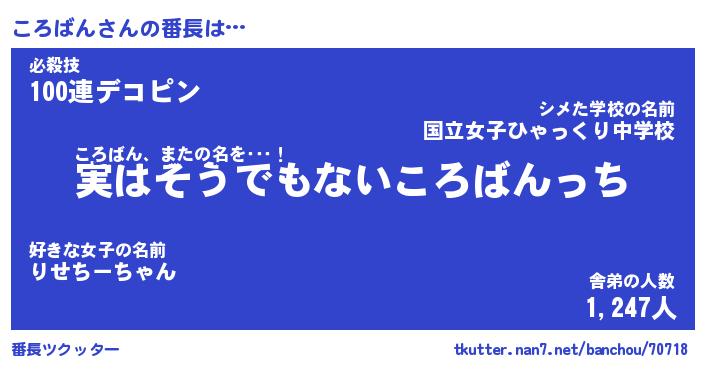 | ファンタジー風あだ名 | 『コロフェル』『エターナルコロバンー』 |