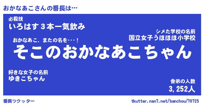 | 肩書あだ名 | 『おかなあこ社長令嬢』『おかなあこ班長』 |