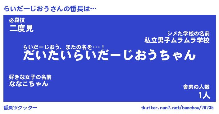 | 肩書あだ名 | 『らいだーじおう御曹司』 |