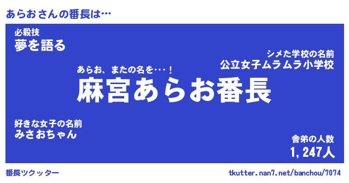 | ヒーロー風カッコイイあだ名 | 『スーパーアラオ』『ウルトラあらおマン』 |