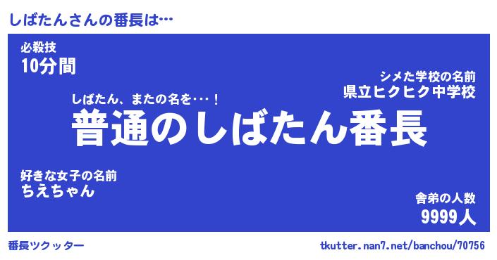 | ファンタジー風あだ名 | 『シバフェル』『エターナルシバタンー』 |