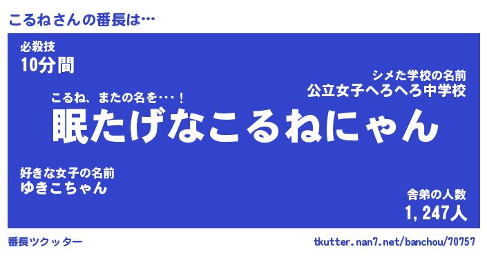 | 意味不明あだ名 | 『ペロリンこるね』『こるねフォーエバー』 |