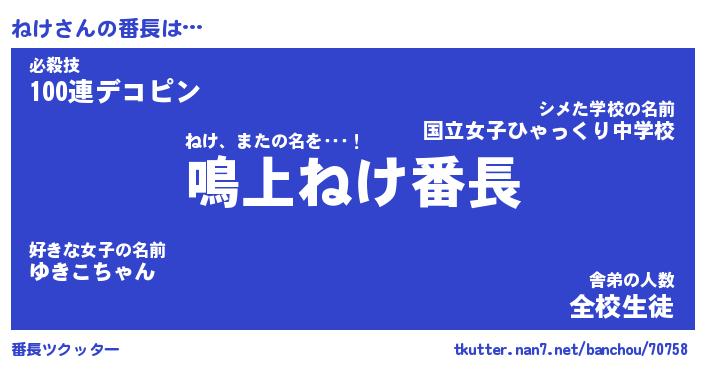 | ヒーロー風カッコイイあだ名 | 『スーパーネケ』『ウルトラねけマン』 |