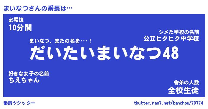 | 欧米人風あだ名 | 『マイケルまいなつ』『ウサインまいなつ』 |